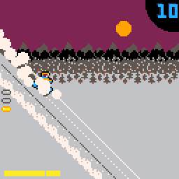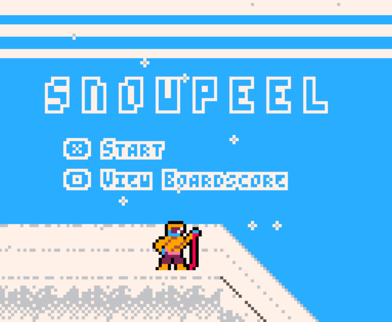 Snowpeel is a snowboard action game inspired by Excitebike on the NES.